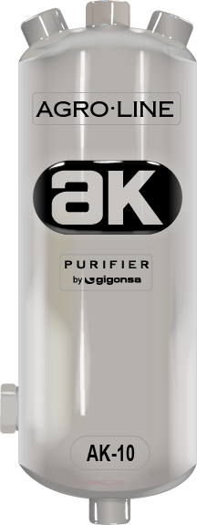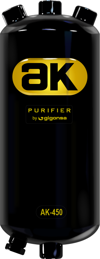 La propuesta técnica de Gigonsa con su línea AK rompe con el paradigma de los consumibles. En lugar de atrapar la suciedad en una malla que se obstruye, los purificadores AK utilizan principios físicos inmutables: la fuerza centrífuga, la precipitación y la turbulencia controlada. Al ingresar el diesel a la unidad sellada, un diseño interno de deflectores induce un movimiento rotacional que proyecta los elementos más pesados (agua y sólidos) hacia las paredes periféricas, donde se precipitan hacia la cámara de recolección.